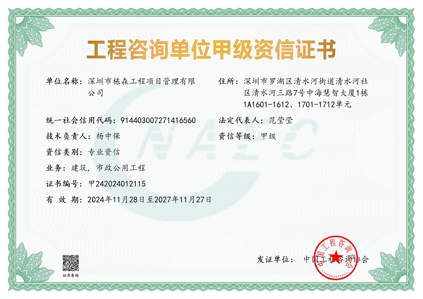提供市政公用工程監理甲級、房屋建筑工程監理甲級業務 |